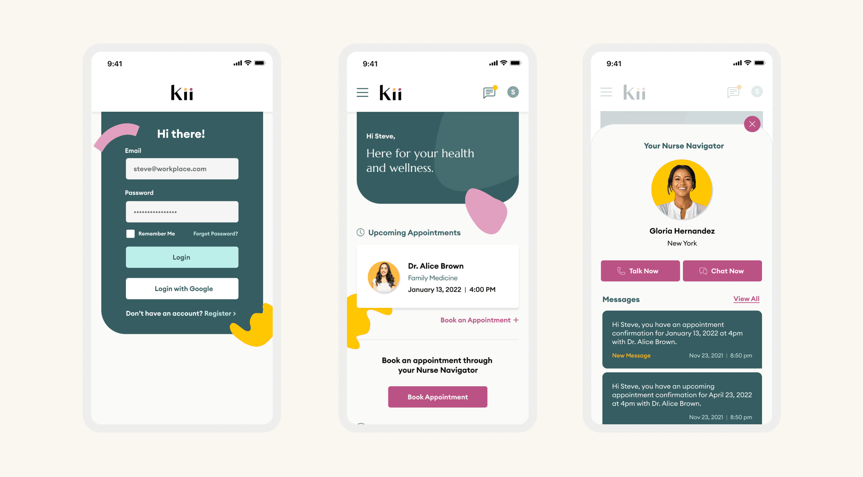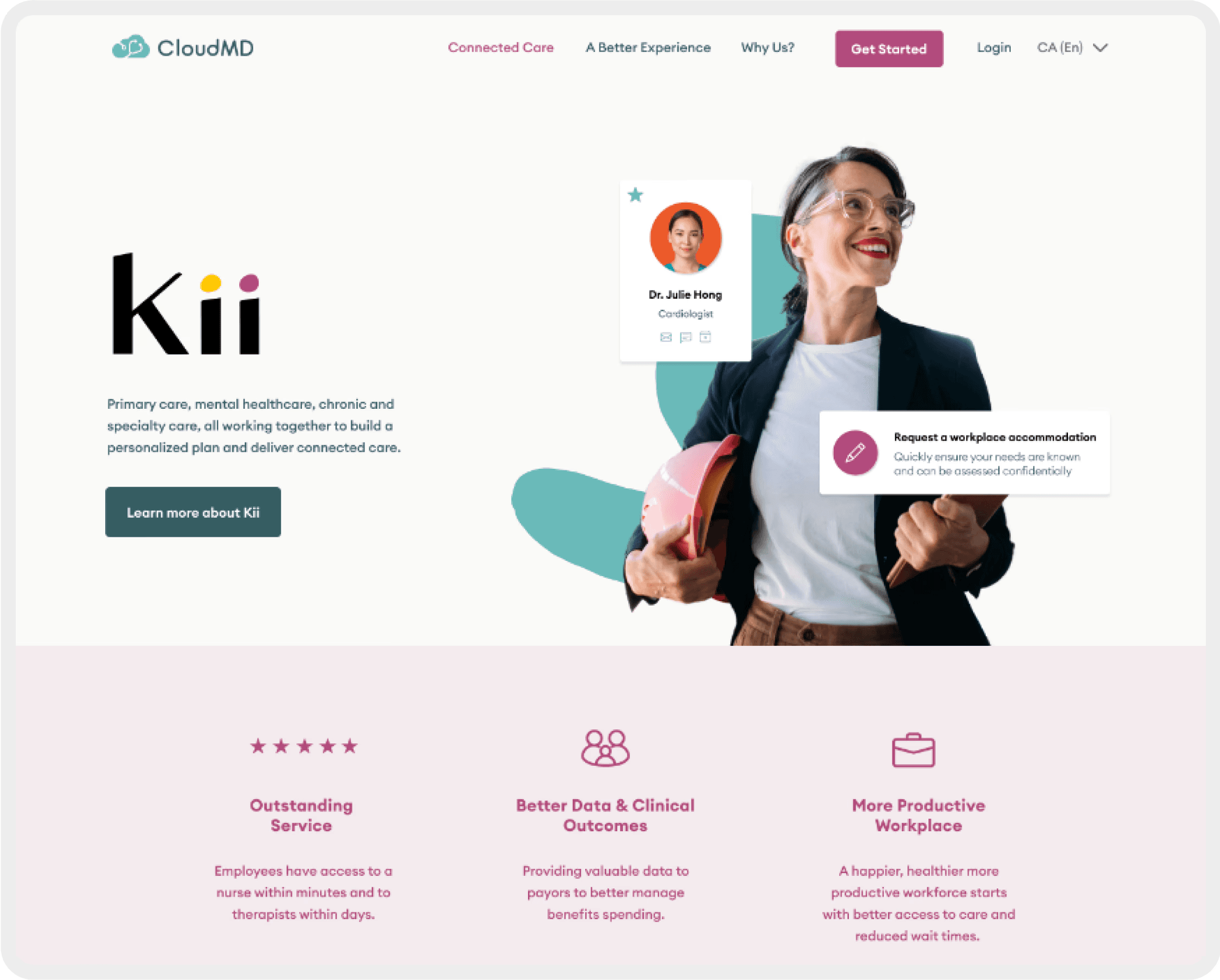 What made the CloudMD suite of services so unique was their Nurse Navigator — a personal health concierge that helps patients navigate the variety of services in the platform as well as in the healthcare system. This person was the 'key' to unlocking a complex system to help drive patient success. And the name Kii was born.