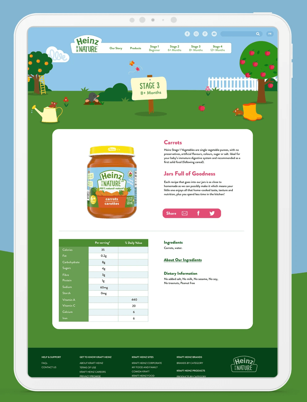 The new product launch in Canada also required a complete head-to-cottontail update to introduce the replace the legacy Heinz Baby Food brand with Heinz By Nature brand elements. This was more than a facelift, it was a complete overhaul, incorporating revised user journeys, a site re-architecture to support the new product SKU hierarchies, and an entirely new responsive layout to bring the site into the 21st century of mobile first commerce.