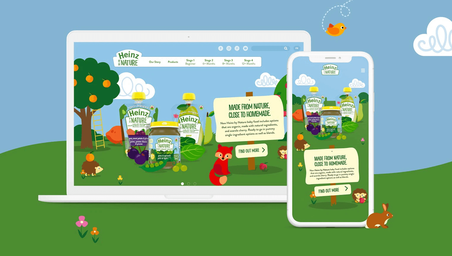 The iconic jars and purees of Heinz Baby Food is known the world over as a category leader for decades. However, with changing values around quality, origin, and nutrition, Heinz re-envisioned their entire product line with a new organic and natural line of baby foods called Heinz By Nature.