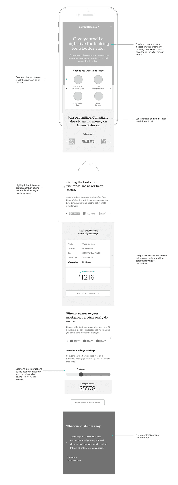 We also worked with LowestRates to define a more accessible and friendly tone of voice, both to engage consumers looking for better rates on their platform, as well as separate their personality from other rate comparison sites in the category, who were typically more functionally oriented.