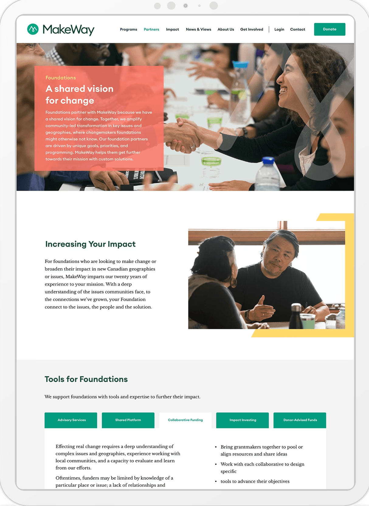 One we had the new brand in place, it was important to revisit the Tides Canada website and help rearchitect the site to better explain the many aspects of the organization, to multiple stakeholder groups. This included a net-new UX and core site architecture, with a robust content strategy and responsive UI revitalization to ensure the brand was fully utilized.