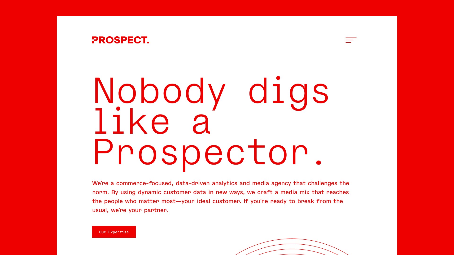 The media agency landscape is highly competitive — and the big players all seem to share a 'look' , so cutting through the noise to visually and tonally separate Prospect from the pack was key. How do we highlight the unique skill set that helps Prospect find discover and develop effective media strategies for their clients that is unlike any other agency in the biz?