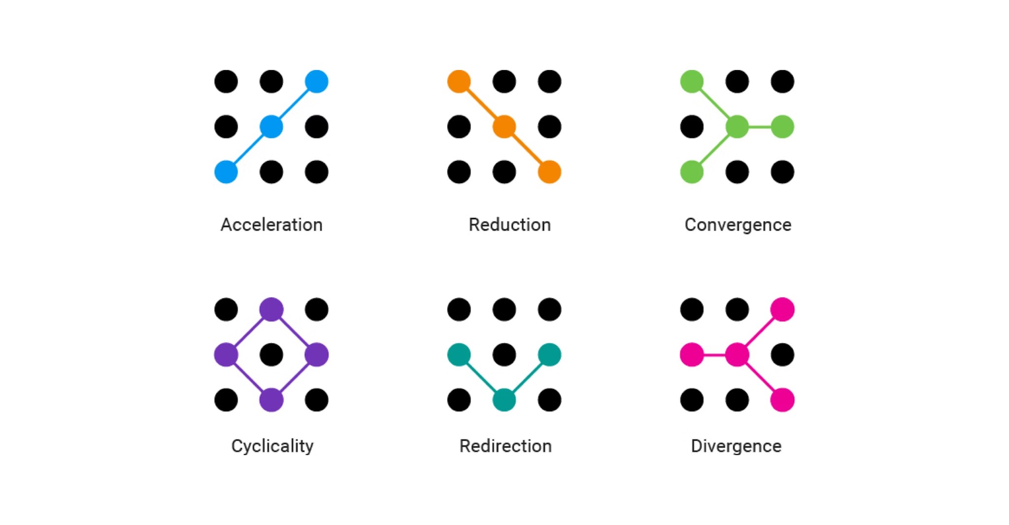 We used this insight to craft a modern and scalable design system with a black-and-white palette, geometric patterns, and a confident palette to add a touch of excitement. The new identity leverages the idea of connecting dots, using geometric patterns and imagery, and its endless permutations allowed the internal design team to continue expanding the brand assets into the future.