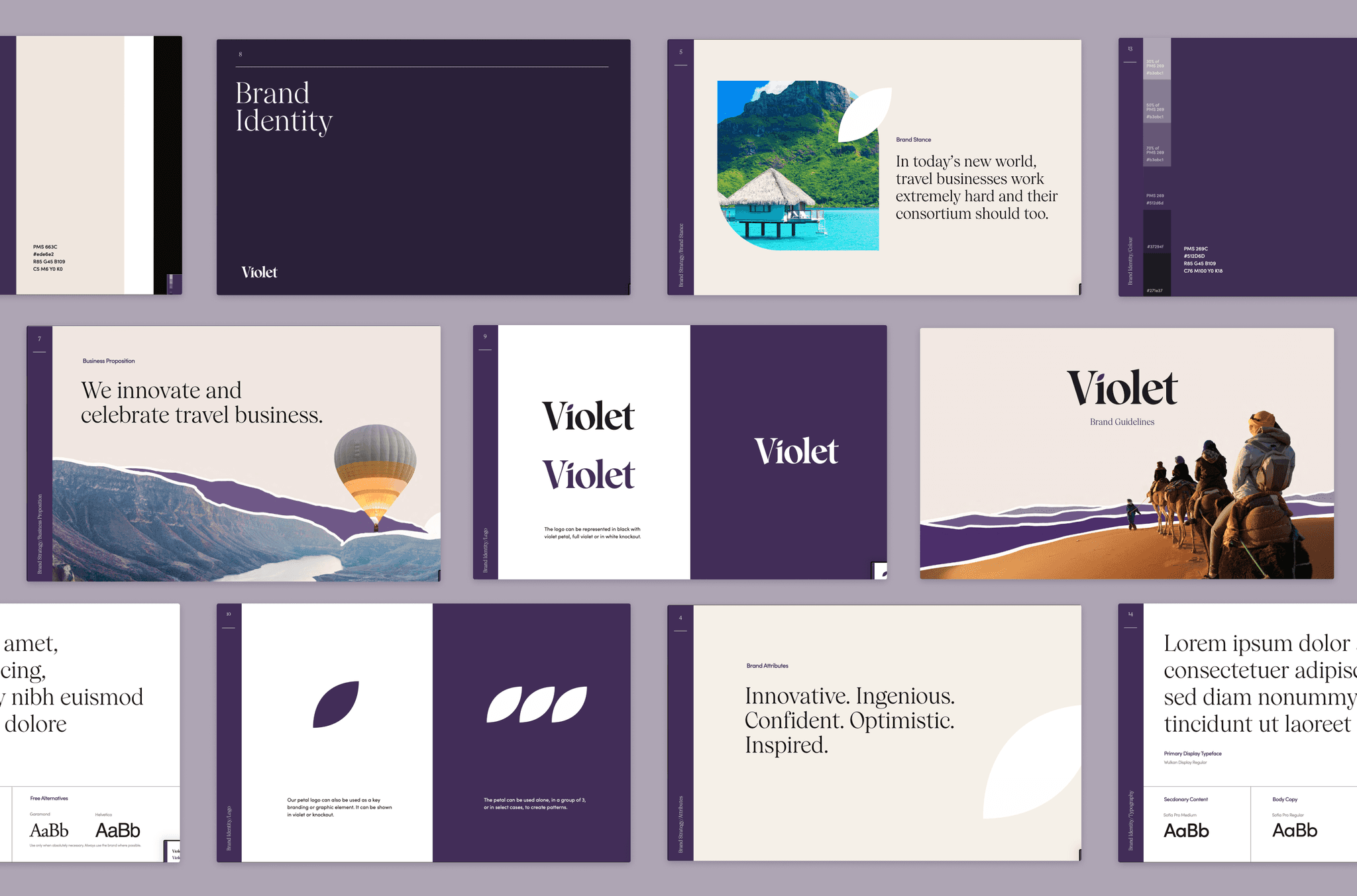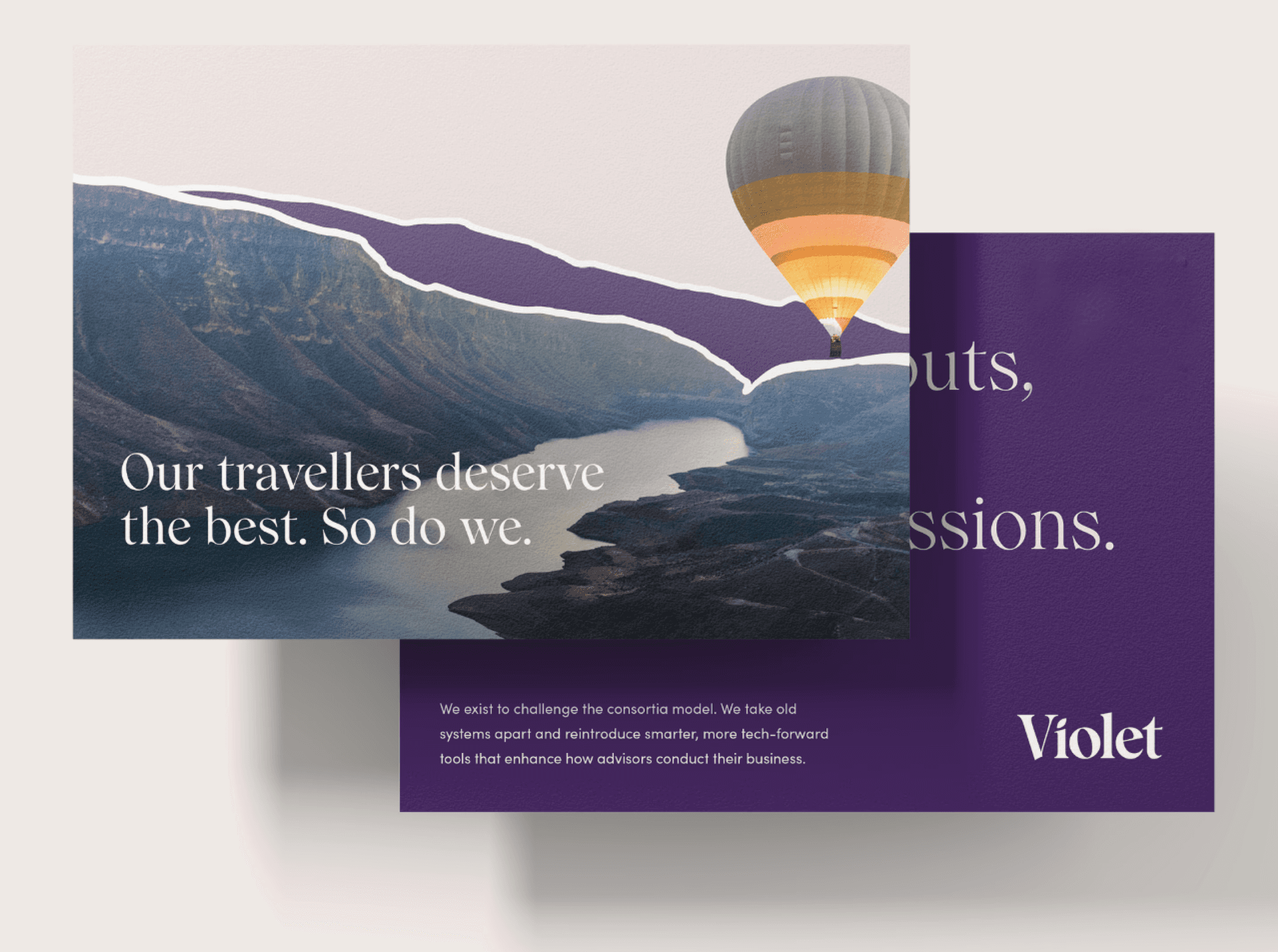 Our creative team rolled up our sleeves and pulled out our passports on a journey to uncover a new name and brand for this exciting new business. Multiple rounds of exploration eventually yielded a new name, and inspiration for a new visual identity — Violet.